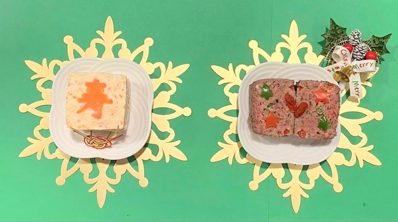 ビーフにいんげんとパプリカを混ぜてクリスマカラーのテリーヌを作ってみました^_^
